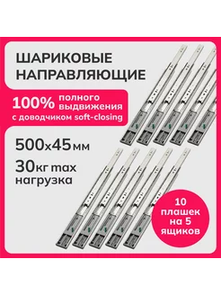 Направляющие шариковые с доводчиком soft 500мм, h 45мм(5)
