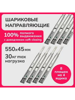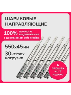 Направляющие шариковые с доводчиком soft 550мм, h 45мм(4)