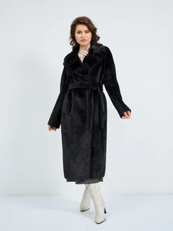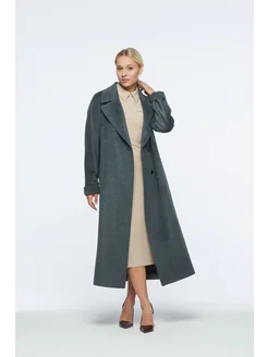 Пальто шерстяное сиреневое с поясом и английским воротником