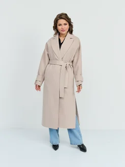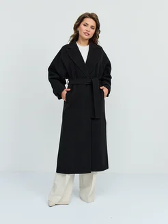 Пальто шерстяное миди с поясом и английским воротником