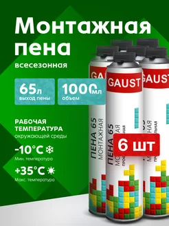 Пена монтажная профессиональная 65 всесезонная, 6 шт
