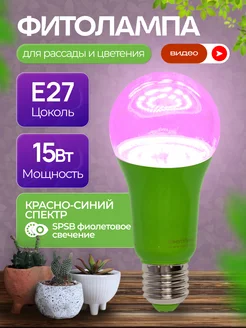Фитолампочка для растений рассады и цветения Е27 15Вт