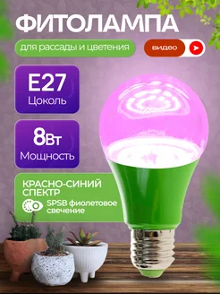 Фитолампочка для растений рассады и цветения Е27 8Вт