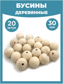 Бусины деревянные для рукоделия макраме крупные набор 30 мм