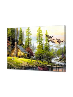 Картина для интерьера на холсте "Домик у ручья" 70*50 см