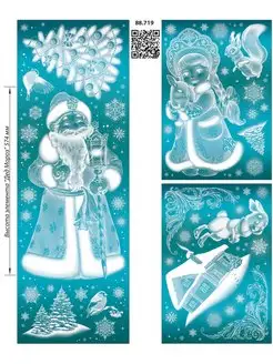 новогодние наклейки на окна украшения Дед мороз и снегурочка