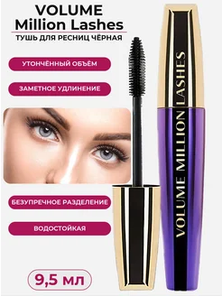 Тушь для ресниц черная объём и удлинение, водостойкая