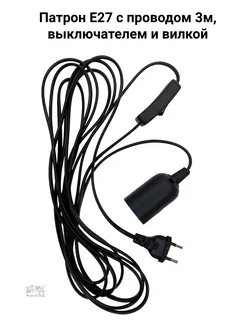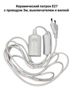 Патрон Е27 с проводом 3м выключателем и штепсельной вилкой
