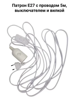 Патрон Е27 для лампы с проводом 5м вилкой и выключателем