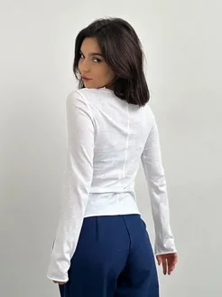 Лонгслив с длинным рукавом облегающий полупрозрачный хлопок