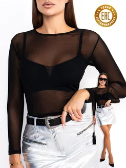 Кофта сетка женский лонгслив прозрачный с длинным рукавом