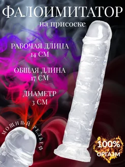 Фаллоимитатор на присоске прозрачный дилдо резиновый член