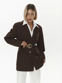 Пиджак удлиненный коричневый, базовый стиль