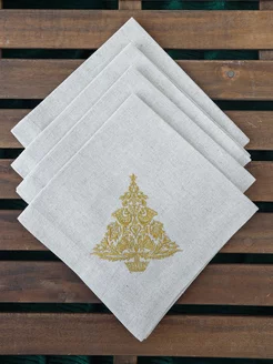 Салфетки текстильные льняные сервировочные с вышивкой 4 шт
