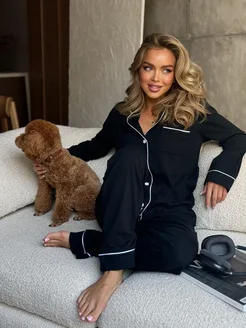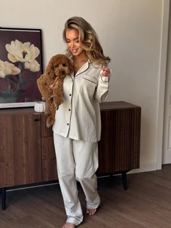 Пижама со штанами и рубашкой хлопковая с длинным рукавом