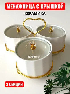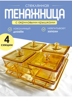 Менажница стеклянная с крышкой для орехов и сухофруктов