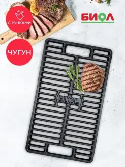 Чугунная гриль сковорода на 28 см. съемной ручкой
