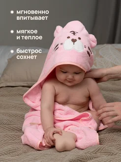 Полотенце детское банное 70Х140 для новорожденного капюшоном