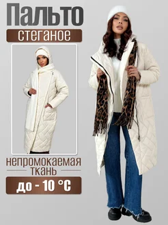 Зимнее пальто стеганое с капюшоном пуховик длинный