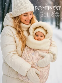 Зимний меховой конверт комплект на выписку новорожденных