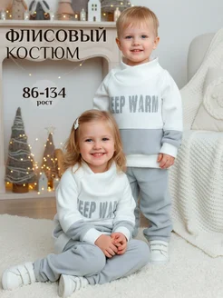 Теплый детский флисовый костюм кофта и штаны
