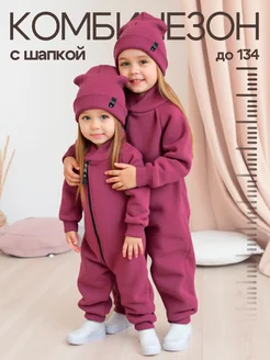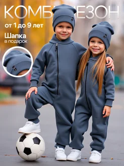 Детский комбинезон с шапкой весенний флис с начесом