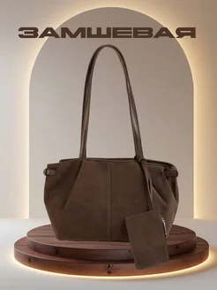Сумка через плечо замшевая большая хобо коричневая шоппер