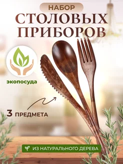 Ложка нож и вилка, набор столовых приборов из дерева 3 шт