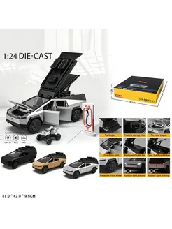 Tesla Cybertruck с заправкой и квадриком 1 24 M92326 Золотой
