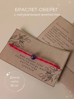 Браслет оберег красная нить с натуральным аметистом
