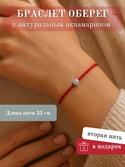 Браслет оберег красная нить с натуральным аквамарином