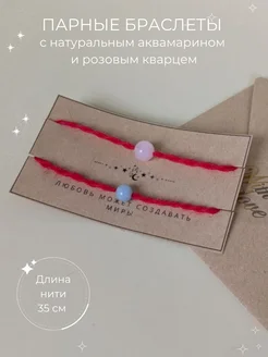 Парные браслеты с натуральным аквамарином и розовым кварцем