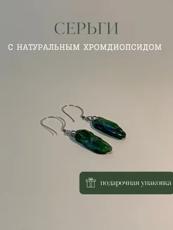 Серьги с натуральным камнем хромдиопсидом