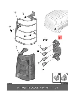 Плата зад. фонаря BERLINGO PARTNER 2002 =>