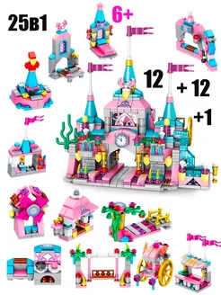Конструктор "Замок 12+12+1 в 1". 6+. Розовый и голубой