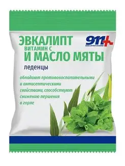 911 Леденцы эвкалипт, витамин С, масло мяты 50г