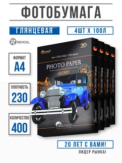 Фотобумага а4 глянцевая для принтера 230г 400л (4*100л)
