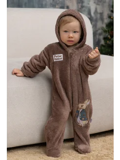 Комбинезон для новорожденных малышей плюшевый с капюшоном