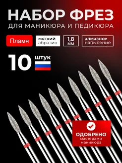 Фреза алмазная Пламя с красной насечкой 1,8 мм. 10шт