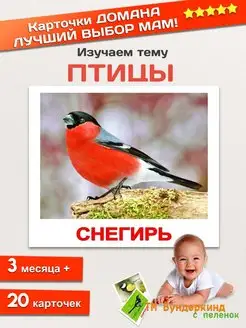 Обучающие карточки "Птицы", 20 карточек Домана с фактами