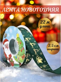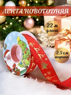 Лента атласная новогодняя для подарков 2.5 см 22 м