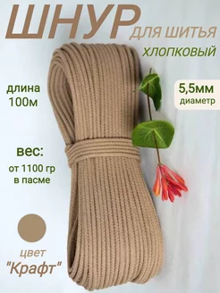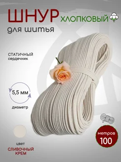Шнур плетеный хлопковый для шитья с сердечником 100 м 100%ХБ