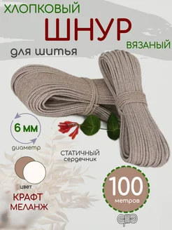 Шнур для шитья хлопковый с сердечником вязаный 6 мм 100м