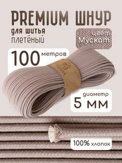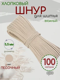 Шнур для шитья хлопковый с сердечником вязаный 5,5мм 100м