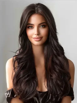 Парик женский длинный темно-коричневый мелированный