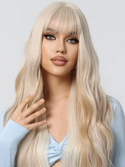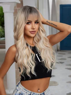 парик блонд женский кудрявый длинный с челкой
