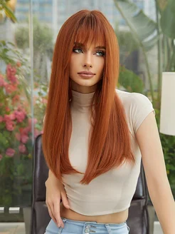 Парик женский длинный рыжий с челкой