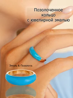 Яркое кольцо с голубой эмалью позолоченное BONBONS