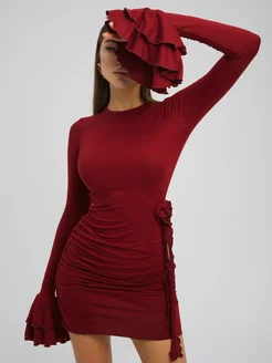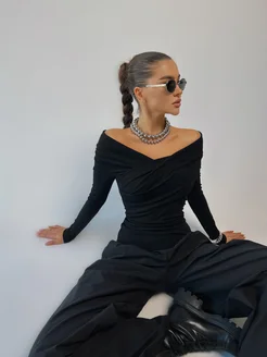 Топ вечерний удлиненный с узлом со спущенными плечами