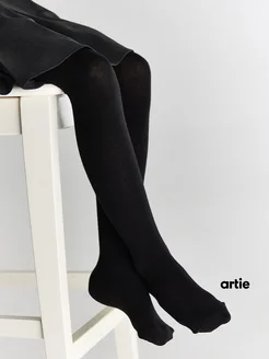 Колготки детские меланжевые в рубчик с рисунком школьные